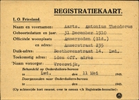 Onderduikinschrijving van Antonius Theodorus Aarts