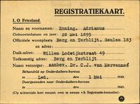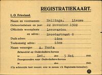 De collectie onderduikkaarten die oorspronkelijk vanaf 2016 op de website Ondergedoken in Fryslân werden gepubliceerd. De data is in 2025-26 overgezet en bewerkt voor een nieuwe publicatie. NB. het betreft een deel van de totale collectie onderduikkaarten er indertijd gekozen voor het publiceren van mensen met een geboortedatum tot 1916.