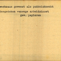 Achterkant bijzonderheden: gew. papieren - Achterkant beroep: pakhuisknecht