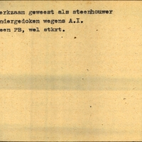 Achterkant bijzonderheden: geen PB, wel stkrt. - Achterkant beroep: steenhouwer