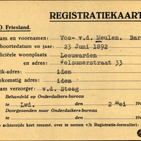 Achterkant bijzonderheden: Ondergedoken wegens staking van N.S. (echtgenoot was machinist bij N.S.) - Achterkant beroep: Huisvrouw