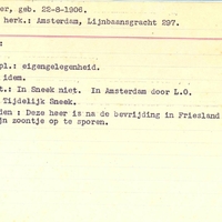 Bijzonderheden: Deze heer is na de bevrijding in Friesland gekomen teneinde zijn zoontje op te sporen. - - In rayon geplaatst en ondergebracht: beide eigen gelegenheid - Duikadres: Tijdelijk Sneek - Foto aanwezig