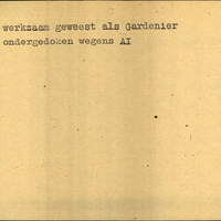 Achterkant bijzonderheden: Toekomstig adres: idem off. adres - - Behandeld op Onderduikers-bureau te Lwd. den 11 Mei 1945. - Achterkant beroep: werkzaam geweest als Gardenier