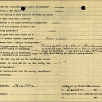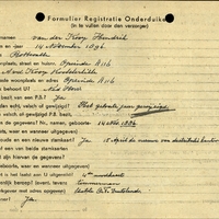 Bijzondere opmerkingen: P.B. Geboortejaar gewijzigd in 14-11-1886 - Te werk gesteld in Duitsland (stuwdamramp Ruhrgebied), met verlof naar Nederland en toen ondergedoken. Verlof 27-9-1943. 1-11-1943 tot 1-11- 1944 ondergedoken bij A. v.d. Kooy. 1-11-1944 tot heden thuis ondergedoken.