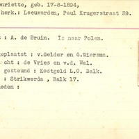 Bijzonderheden: Echtgenoot is naar Polen. - Financieel gesteund: Kostgeld L.O. Balk - - foto aanwezig