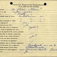 Bijzondere opmerkingen: Steun: Ik ontving tijdelijk steun, want ik heb ook bij de Boer gewerkt. - - Opm.: In het eerst ontving ik f 15 per week, dan naar afloop van de Boer, dat was Oct. 1944, heb ik tot Jan 1945 maar f 40 gehad. van De Apeldoorn.