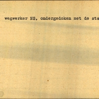 Achterkant bijzonderheden: Ondergedoken met de staking - Achterkant beroep: wegwerker - Achterkant naam werkgever: NS