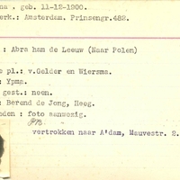 Bijzonderheden: Echtgenoot naar Polen. - Foto en PB aanwezig. - Vertrokken naar A'dam Mauvestr. 2