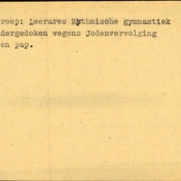 Achterkant bijzonderheden: Toekomstig adres: onbekend - - Behandeld op Onderduikers-bureau te Lwd. den 4 Mei 1945. - Achterkant beroep: Leerares Rythmische gymnastiek