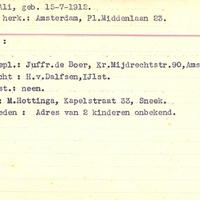 Bijzonderheden: adres Juffr.de Boer, Kr. Mijdrechtstr.90 Amsterdam - adres van 2 kinderen onbekend
