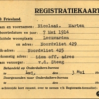 Onderduikinschrijving van Marten Nicolaai