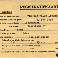 Onderduikinschrijving van Lieuwe van der Velde