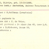 Bijzonderheden: Financ. gesteund: ja sinds jan. 45, door L.O. - Echtgenoot overleden