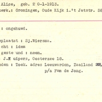 Bijzonderheden: Toek. adres Zaailand 96 Leeuwarden p/a Fam de Jong - Ongehuwd