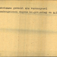 Achterkant bijzonderheden: Ondergedoken wegens kr.gev.schap en A.I. - Achterkant beroep: varensgezel