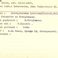Bijzonderheden: bij echtgenoot is opmerking geplaatst - Abrah, Salomon Levisson (Waarsch. Palenstina) - Financieel gesteund: neen.
