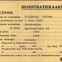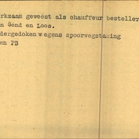 Achterkant bijzonderheden: ondergedoken wegens spoorwegstaking geen PB - Achterkant beroep: chauffeur besteller - Achterkant naam werkgever: Van Gend en Loos
