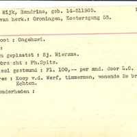 Bijzonderheden: Geboortedatum onduidelijk, staat als 14-511905. Waarschijnlijk 14-5-1905. - ongehuwd - - Financieel gesteund Fl.100,- per mnd. door L.O.