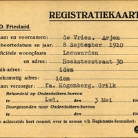 Onderduikregistratie van Arjen de Vries