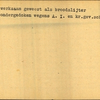 Achterkant bijzonderheden: ondergedoken wegens A.I. en kr.gev.schap - Achterkant beroep: broodslijter