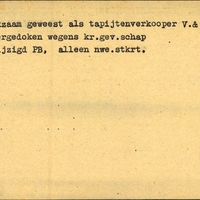 Achterkant beroep: tapijtenverkoper - Achterkant naam werkgever: V&D