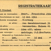 Onderduikregistratie van Fransickus Johannes Swart