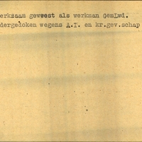 Achterkant bijzonderheden: ondergedoken wegens A.I. en kr.gev.schap - Achterkant beroep: werkman - Achterkant naam werkgever: Gem.Lwd