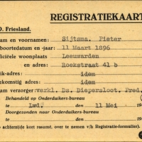 Onderduikregistratie van Pieter Sijtsma
