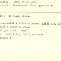Onderduikregistratie van Hanna Frank