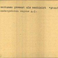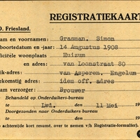 Achterkant bijzonderheden: Toekomstig adres: idem off. adres - - Behandeld op Onderduikers-bureau te Lwd. den 11 Mei 1945. - Achterkant beroep: werkzaam geweest als machinist "stanfries - Achterkant naam werkgever: -