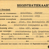 Onderduikregistratie van Pieter Scholten