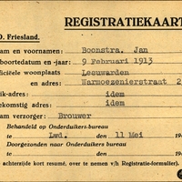 Onderduikregistratie van Jan Boonstra