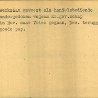 Achterkant bijzonderheden: In Nov. naar Vries gegaan, Dec. teruggekeerd. (Opgemaakt 8 mei 1945.) - Achterkant beroep: Handelsbediende - Achterkant naam werkgever: -