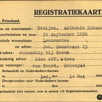 Onderduikregistratie van Anthonie Hohannes Neuijen