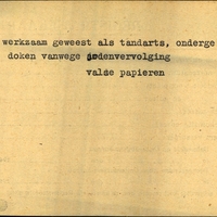 Achterkant bijzonderheden: Toekomstig adres: idem off adres - - Behandeld op Onderduikers-bureau te lwd. den 21 apr 1945. - Doorgezonden naar Onderduikers-bureau te Utrecht den 21 april 1945. - Achterkant beroep: werkzaam geweest als tandarts