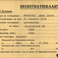 Onderduikregistratie van Adam Jacob Gaastra