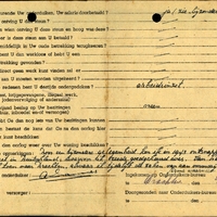 Bijzondere opmerkingen: Door een bijzondere gelegenheid kon ik in 1943 ontsnappen aan arbeidsinzet in Duitsland, waarvoor ik reeds goedgekeurd was. Van Leeuwarden verhuisde ik toen naar Drachten, alwaar ik tijdelijk de zaken van aan ommezijde genoemde firma waarneem.