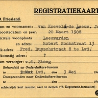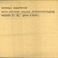 Achterkant bijzonderheden: valsch P. B. geen stkrt. - Gehuwd met van Kreveld? - Achterkant beroep: Huisvrouw - Achterkant naam werkgever: -