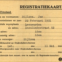 Onderduikregistratie van Jan Bijlsma