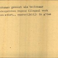 Achterkant bijzonderheden: ondergedoken wegens illegaal werk,geen stkrt.,waarschijnlijk in A'dam - Achterkant beroep: teekenaar