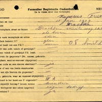 Bijzondere opmerkingen: Reden van onderduik; wou niet langer putjes graven. laatst uitgereikte bonkaart IV A. Met potlood bijgeschreven O.T. Smilde