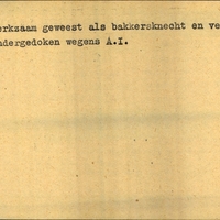 Achterkant bijzonderheden: Toekomstig adres: Huizum, Honthorststraat 47 - - Behandeld op Onderduikers-bureau te Lwd. den 2 Mei 1945 - Achterkant beroep: werkzaam geweest als bakkersknecht en venter