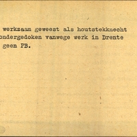 Achterkant bijzonderheden: Ondergedoken vanwege werk in Drente. - Ondergedoken vanwege werk in Drente - Achterkant beroep: Houtstekknecht - Achterkant naam werkgever: -