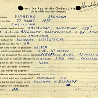 Onderduikregistratie van Abraham Pinheiro