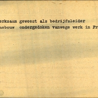 Achterkant bijzonderheden: "Ondergedoken vanwege werk in Fries - Achterkant beroep: Bedrijfsleider machinebouw
