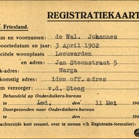 Onderduikregistratie van Johannes de Wal