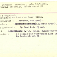 Onderduikregistratie van Carolina Veronica de Leeuw
