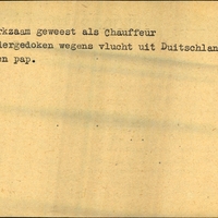 Achterkant bijzonderheden: "ondergedoken wegens vlucht uit Duitsland - Achterkant beroep: Chauffeur