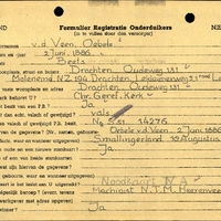 Onderduikregistratie van Oebele v.d. Veen
