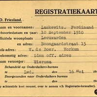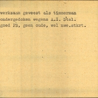 Achterkant bijzonderheden: Duik-adres: W. de Boer, Workum. - Toekomstig adres: idem off. adres. - Goed P.B. Geen oude, wel nieuwe stkrt. - Achterkant beroep: Timmerman